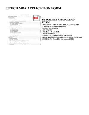 Read Online UTECH MBA APPLICATION FORM Hardcover
